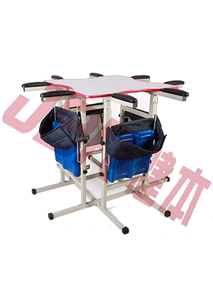 型號:P-SZL-B 名稱:四人站立架 規格:145*145*110cm 用途:截癱、腦癱等站立功能障礙患者站立訓練,也可預防改善骨質疏松、壓瘡、心肺功能降低等