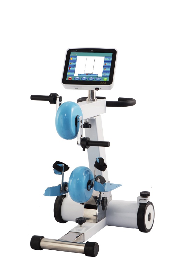 產品特點 1、智能康復訓練系統造型美觀、穩固、大方、實用。針對患者訓練的安全性和穩定性設備做了配重設計和防滑設計。 2、智能康復訓練系統電機動力系統運動時有力且平穩,使智能康復訓練系統在患者訓練時安全有保證,使設備的各項功能指標都能正確運行。 3、智能康復訓練系統動力系統采用特殊的結構設計,使智能康復訓練系統的動力系統使用壽命長。 4、智能康復訓練系統具有患者從完全被動訓練階段到主動和被動訓練相交叉的助力訓練階段到完全的主動訓練階段到初期主動力量訓練階段的患者康復過程。 5、智能康復訓練系統采用10.4寸彩色液晶觸摸屏,一目了然的控制面板的設計,使醫務工作者能輕松容易的掌握。 6、智能康復訓練系統具有六種針對性的訓練模式:神經模式、骨科模式、心肺模式、反饋模式、被動模式、游戲模式。 7、智能康復訓練系統具有四種患者訓練安全保護功能:痙攣保護、聲控保護、靶心率保護、磁控保護。且痙攣敏感等級、聲控敏感等級和靶心率目標數值均可調。 8、智能康復訓練系統參數可調: